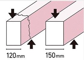100%ベタ基礎への、こだわり。 より丈夫な基礎(土台を支えるコンクリートの部分)を築くために、家と同じ床面積を持つ基礎コンクリートによって建物の荷重を地盤に伝える「ベタ基礎」工法を採用しています。「ベタ基礎」は、建物の下一面にコンクリートを打つ工法。