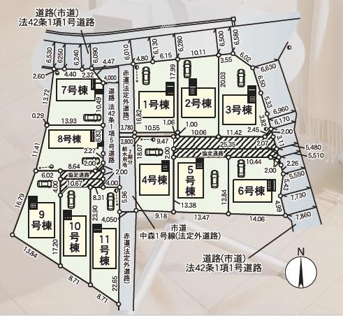 | 地目 | 宅地 | 道路付け | 道路幅:5.4m・6m、アスファルト舗装、東側約5.4m~公道、北側約6.0m~公道 | ||