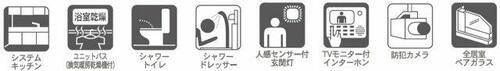 | 設備 | 収納スペース・追焚機能・プロパンガス・浴室乾燥機・照明器具・シャンプードレッサー・ウォシュレット・システムキッチン・カウンターキッチン・クロゼット・トイレ2ヶ所・床下収納・複層ガラス・電気・上水道・下水道 | ||||