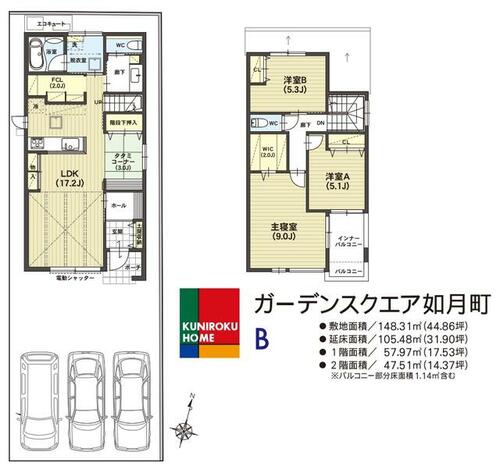 | 建物面積 | 105.48㎡ | 土地面積 | 148.31㎡ | ||