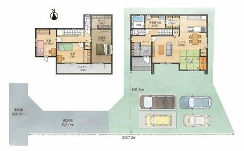 | 私道負担・道路 | 備考に記載 | 道路付け | 西 6.0m 公道 接面3.0m | ||