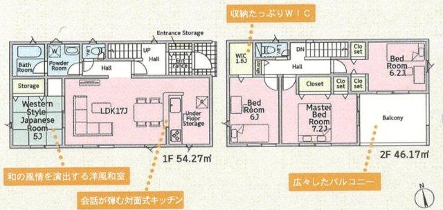※土地(建築条件なし)で「建物プラン例」が表記してある時、そのプラン例は特定の建築請負会社によるもので、当該建築請負会社以外で建てた場合、同様のものが同価格で建てられるとは限りません。また建築請負会社を特定するものではありません。