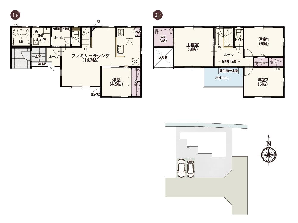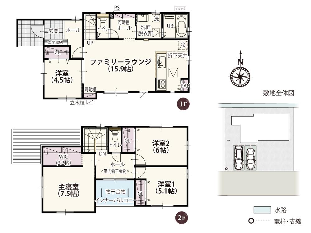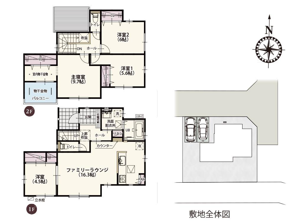 | 建物面積 | 102.67㎡~105.99㎡(31.05坪~32.06坪) | 土地面積 | 181.05㎡~187.95㎡(54.76坪~56.85坪) | ||
