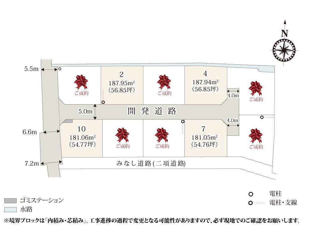 | 地目 | 宅地 | 道路付け | 道路幅:4m~7.2m、アスファルト舗装、北5.0m、南5.0m、西5.5m~7.2m・4.0m | ||