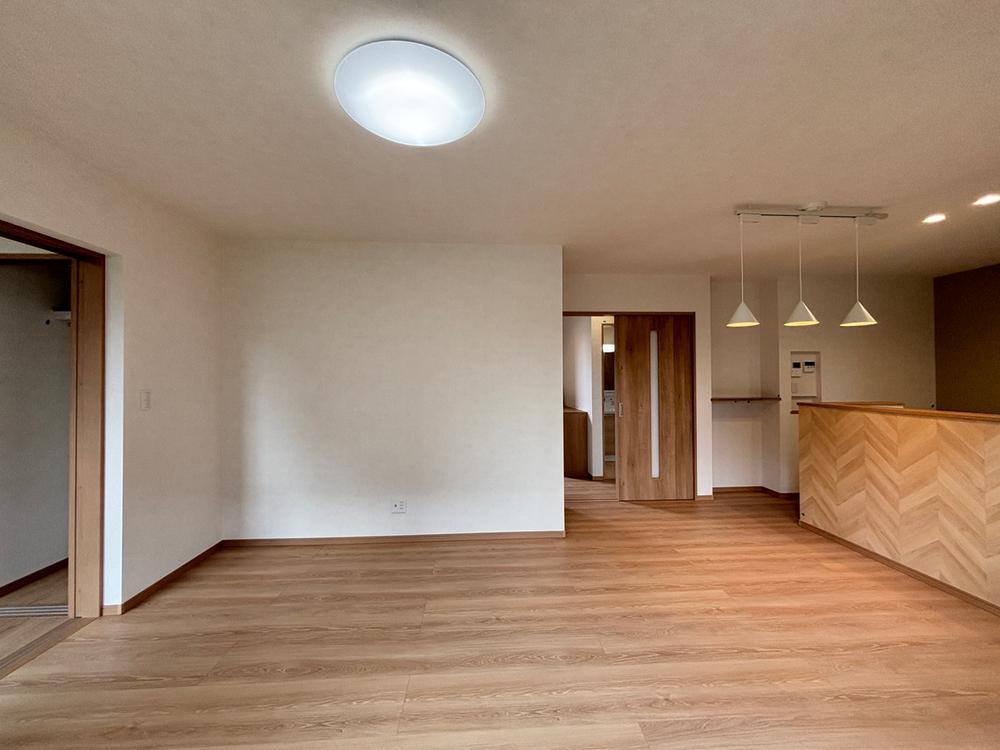 【7号棟 リビング】LDKに隣接した洋室を開放すれば、約20帖超の広々とした空間として利用できます!お子様が元気に遊べるスペースとしても活用でき、ご家族のライフスタイルに合わせた使い方が可能です♪
