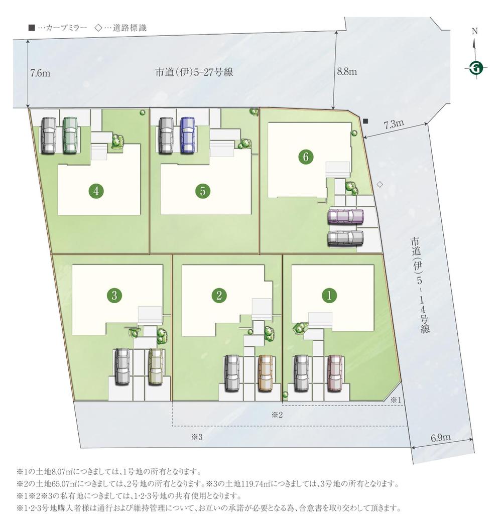 | 備考 | ※入居可能日及び完成時期に関しては、工期の遅れが生ずる場合もございますので、要相談となります。 / 設備:東京電力、公営水道、公共下水道、オール電化、建築確認番号:第R07SHC118150号(2025年10月2日)他、※各号地の上空を電線が通過します。※道路幅員に関しては、接道状況により数値が異なる場合がございますのでご了承下さい。※更新・メンテナンス中に予約・売約済の場合はご容赦願います。※掲載の図面は計画段階の図面を基に描き起こしたもので、実際とは異なる場合がございます。また、施工上の理由及び改良のため変更することがございます。 | ||||