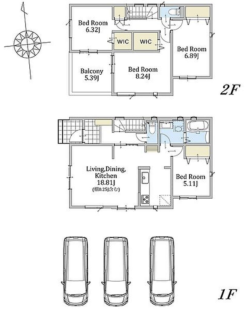 | 建物面積 | 104.79m2~106.82m2 | 土地面積 | 199.51m2~252.65m2 | ||