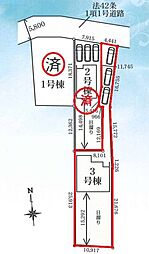 土地面積土地:150.00m2(1号地)、201.89m2(2号地)、179.74m2(3号地) 私道負担なし 建物:104.33m2(1号地)、92.73m2(2号地)、97.70m2(3号地)