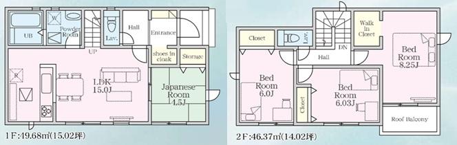 | 建物面積 | 95.03㎡~96.05㎡(28.74坪~29.05坪) | 土地面積 | 136.43㎡~137.17㎡(41.26坪~41.49坪)(登記) | ||