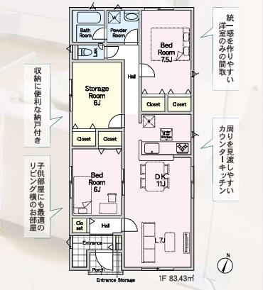 ※建築条件土地の情報内に掲載されている、建物プラン例は、土地購入者の設計プランの参考の一例であって、プランの採用可否は任意です。