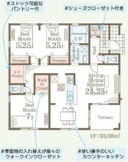 | 建物面積 | 93.38㎡~128.35㎡(28.24坪~38.82坪) | 土地面積 | 249.87㎡(75.58坪)(登記) | ||