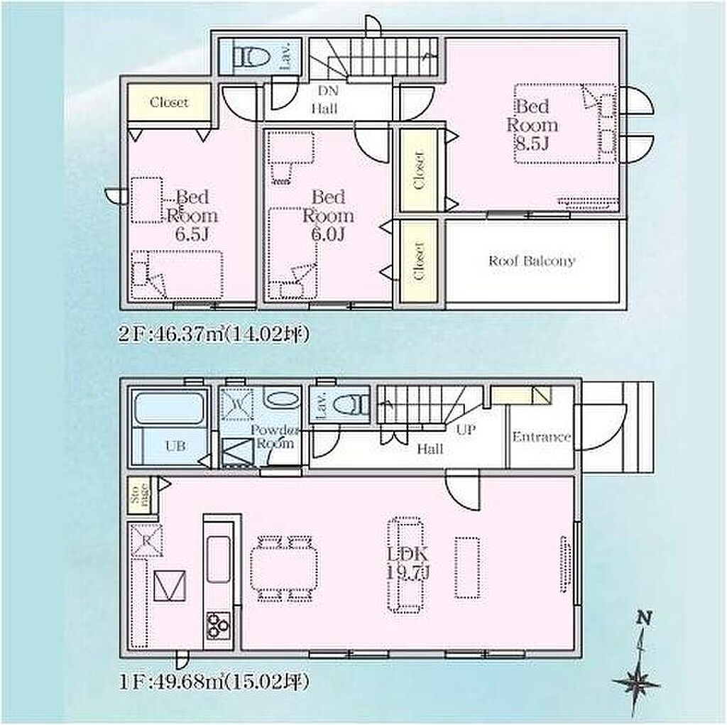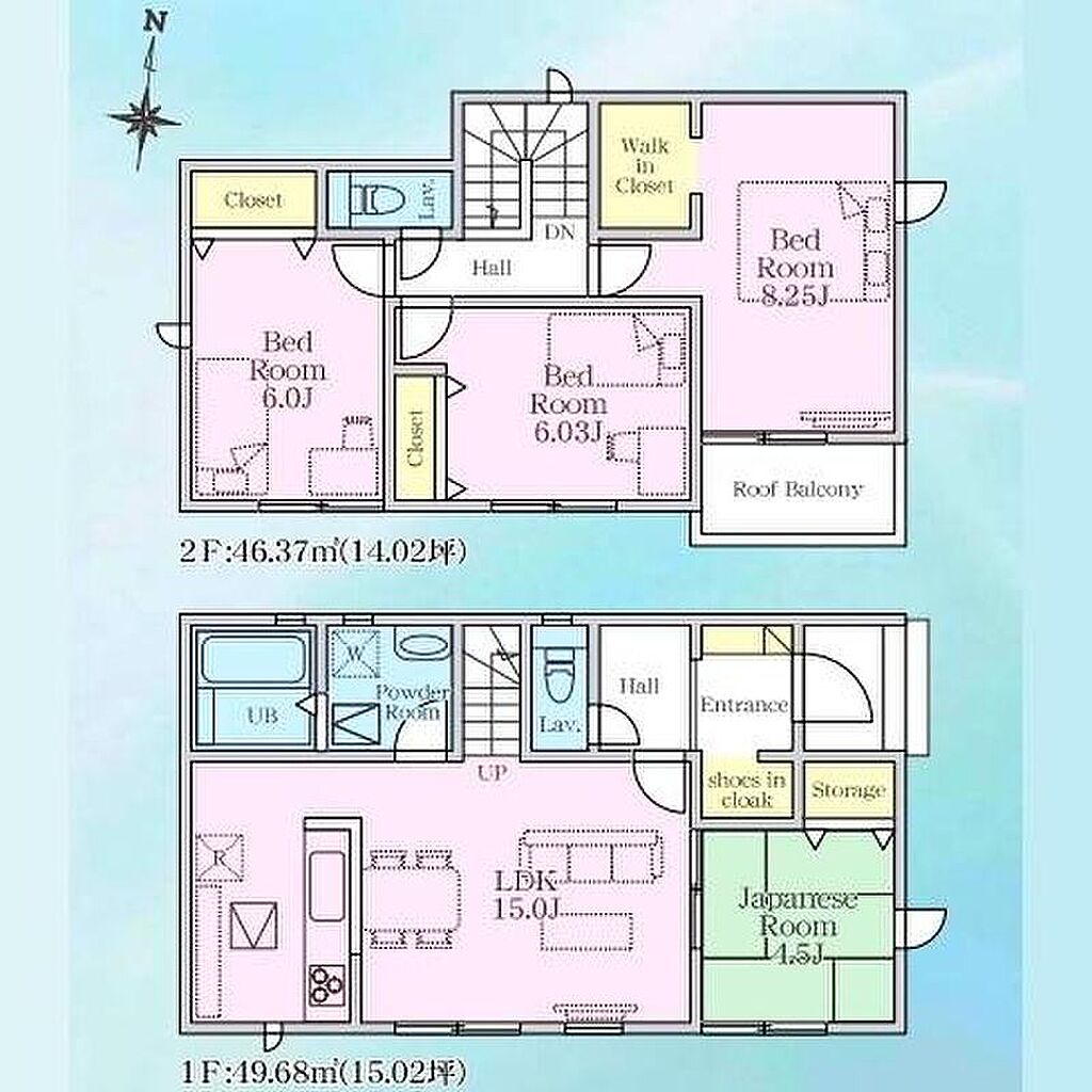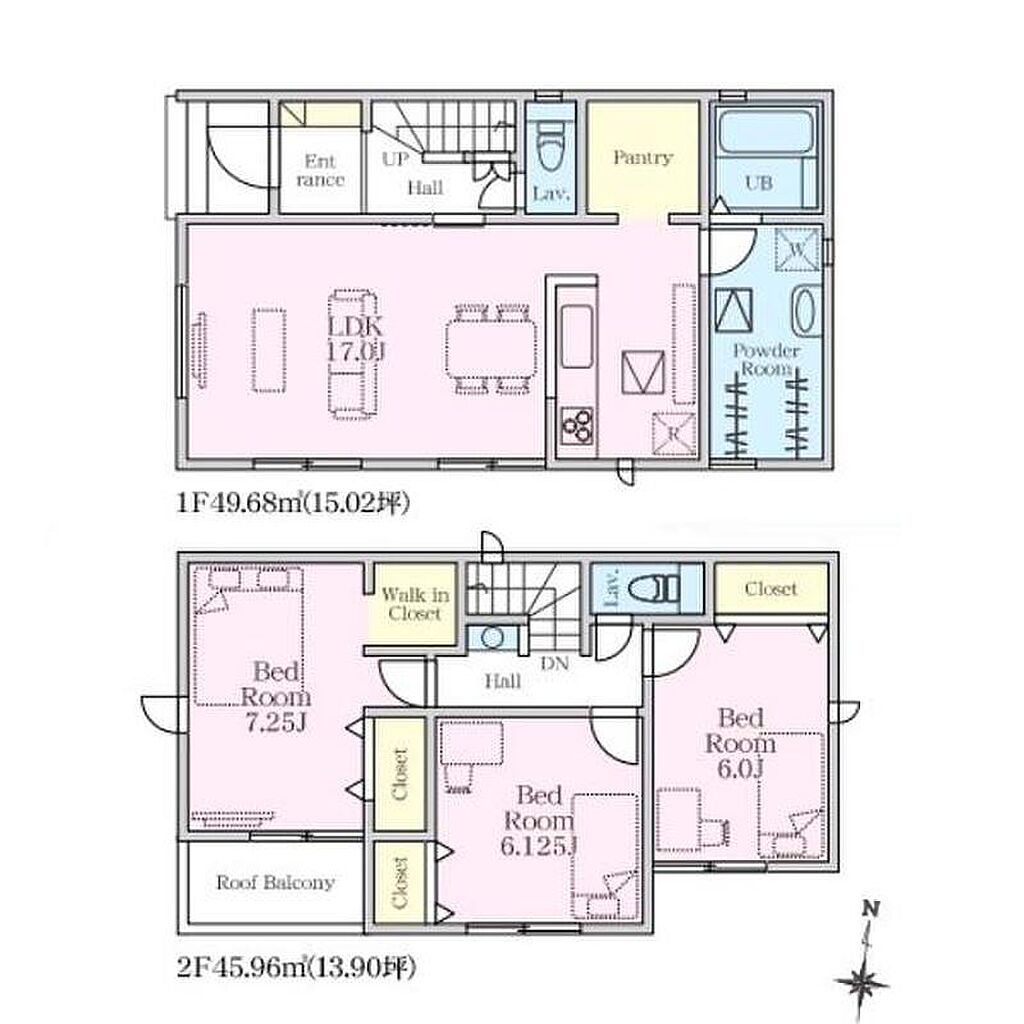 | 建物面積 | 95.64m2~96.05m2 | 土地面積 | 136.43m2~137.17m2(41.26坪~41.49坪)(実測) | ||