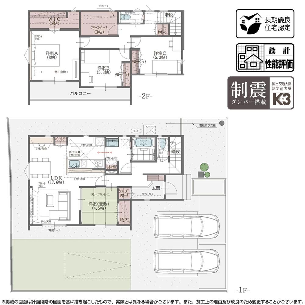 ※建築条件土地の情報内に掲載されている、建物プラン例は、土地購入者の設計プランの参考の一例であって、プランの採用可否は任意です。