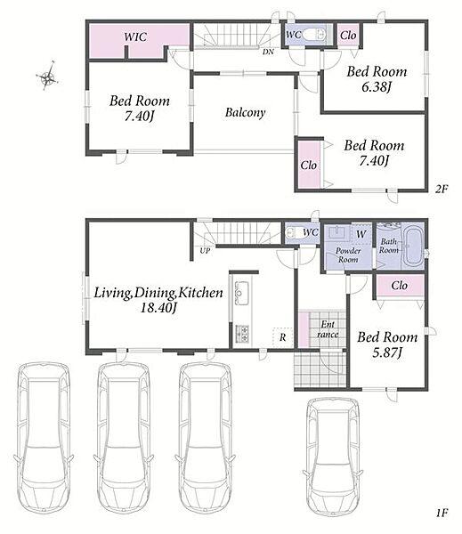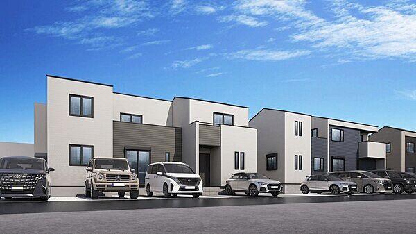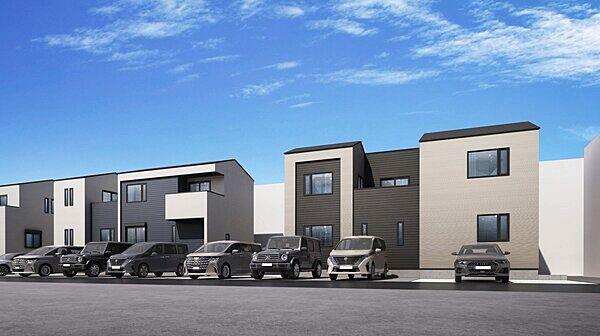 お車4台駐車可能。1階LDKは広々18畳。2階建ての新築分譲住宅です。