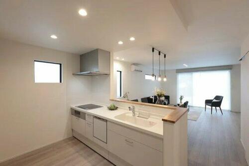 | 設備 | エアコン・給湯・バルコニー・収納スペース・都市ガス・フローリング・浴室乾燥機・Wクロゼット・照明器具・ウォシュレット・システムキッチン・カウンターキッチン・モニタ付インターホン・庭・クロゼット・トイレ2ヶ所・床下収納・IHクッキングヒータ・浄水器・食器洗浄乾燥機・複層ガラス・上水道・下水道・防犯カメラ・省エネ給湯器 | ||||