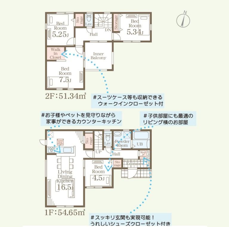 ※建築条件土地の情報内に掲載されている、建物プラン例は、土地購入者の設計プランの参考の一例であって、プランの採用可否は任意です。