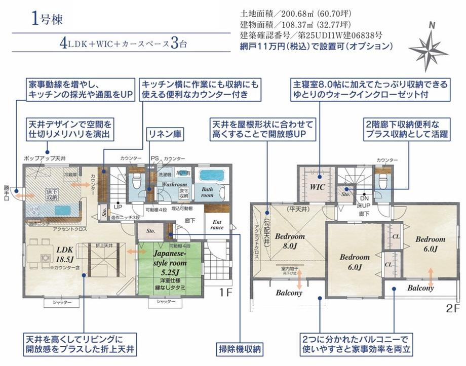 | 建物面積 | 108.37㎡(32.78坪)(登記) | 土地面積 | 200.68㎡(60.70坪)(登記) | ||