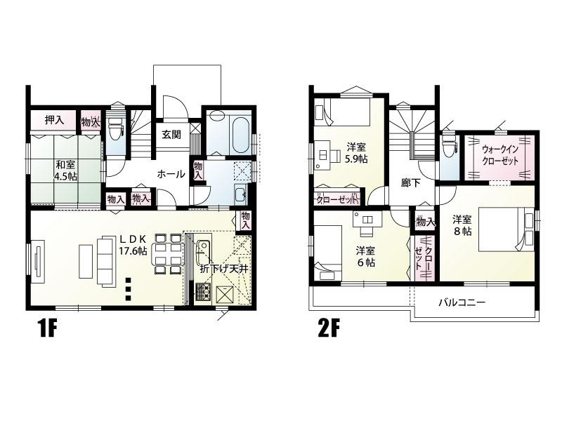 ※土地(建築条件なし)で「建物プラン例」が表記してある時、そのプラン例は特定の建築請負会社によるもので、当該建築請負会社以外で建てた場合、同様のものが同価格で建てられるとは限りません。また建築請負会社を特定するものではありません。