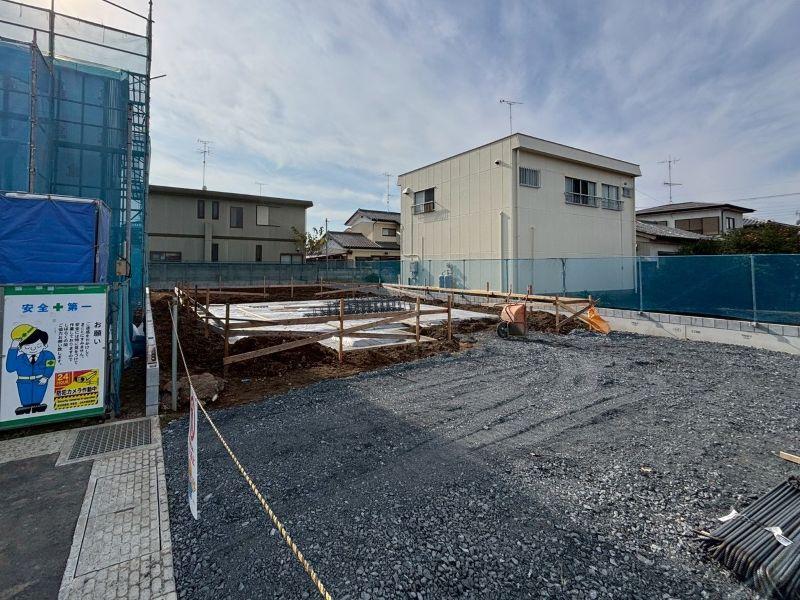 【館林市朝日町2期9区画 8号棟 現地写真】 敷地面積282.88㎡(85.57坪) 建物面積108.89㎡(32.93坪) 2台駐車可能!! 南北に広い敷地で南側に広~いお庭があります!