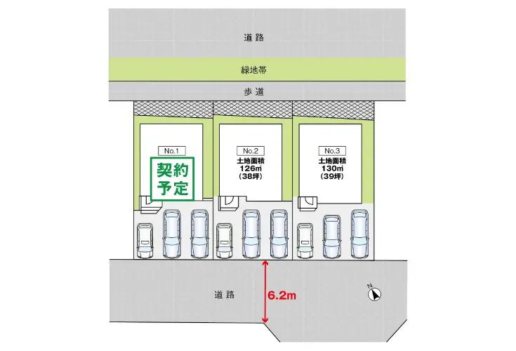 | 建物面積 | 100.84㎡~103.4㎡ | 土地面積 | 126.19㎡~130.6㎡ | ||