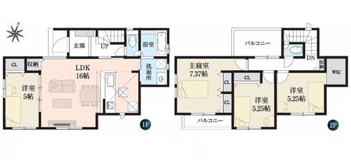 ※土地(建築条件なし)で「建物プラン例」が表記してある時、そのプラン例は特定の建築請負会社によるもので、当該建築請負会社以外で建てた場合、同様のものが同価格で建てられるとは限りません。また建築請負会社を特定するものではありません。