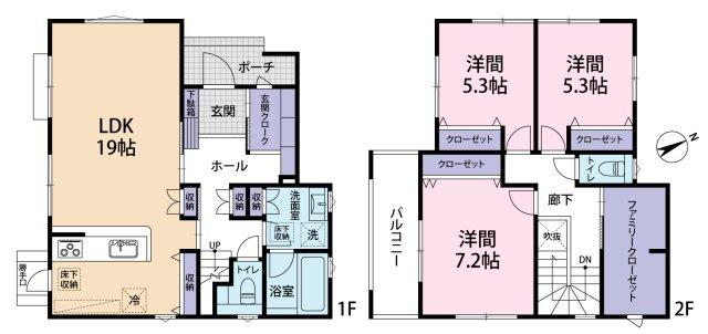 ※土地(建築条件なし)で「建物プラン例」が表記してある時、そのプラン例は特定の建築請負会社によるもので、当該建築請負会社以外で建てた場合、同様のものが同価格で建てられるとは限りません。また建築請負会社を特定するものではありません。