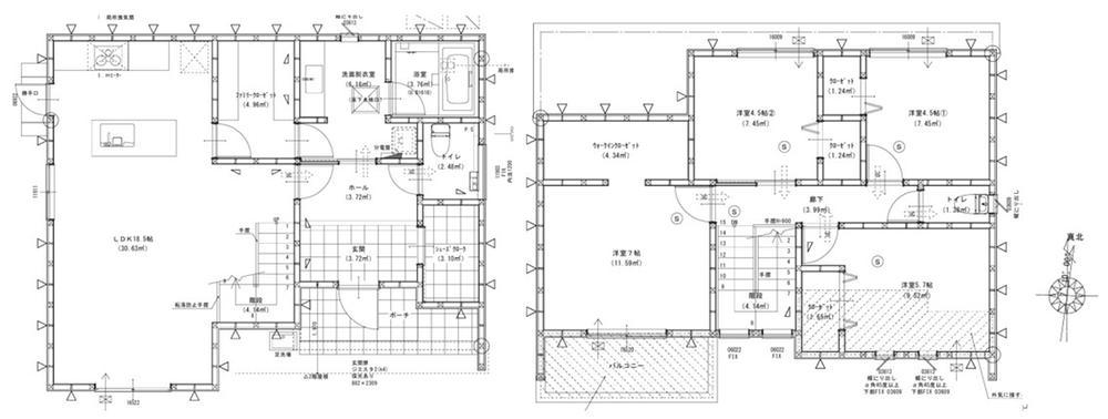| 建物面積 | 116.75㎡・116.96㎡(35.31坪・35.38坪)(実測) | 土地面積 | 166.02㎡・176.52㎡(50.22坪・53.39坪)(実測) | ||