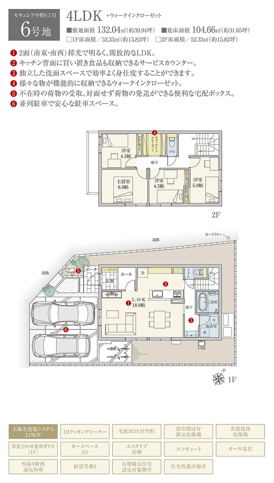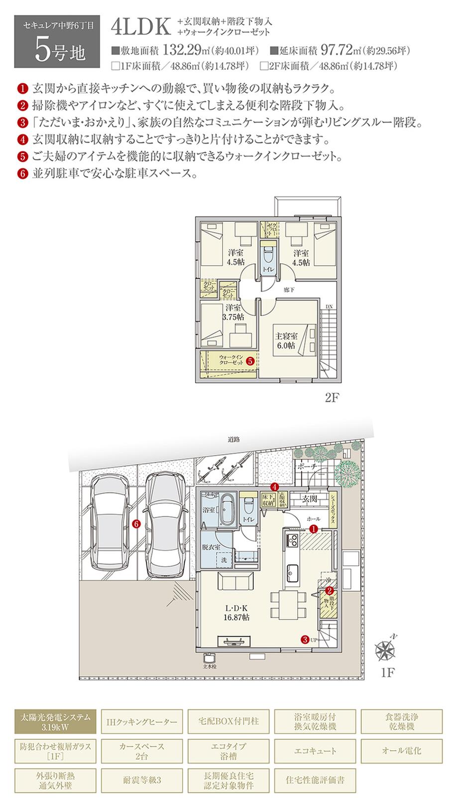 | 建物面積 | 97.72㎡~104.66㎡ | 土地面積 | 132.04㎡~132.29㎡ | ||