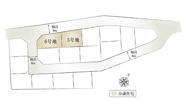 | 地目 | - | 道路付け | 道路幅:6m、アスファルト舗装、(5号地)、(6号地) 全て私道負担なし | ||