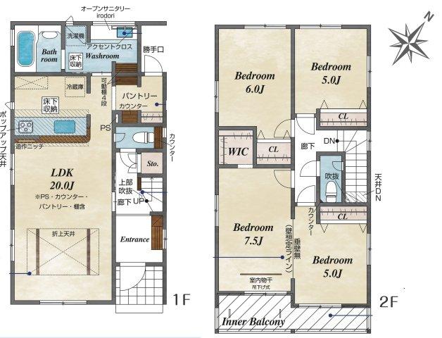 ※土地(建築条件なし)で「建物プラン例」が表記してある時、そのプラン例は特定の建築請負会社によるもので、当該建築請負会社以外で建てた場合、同様のものが同価格で建てられるとは限りません。また建築請負会社を特定するものではありません。
