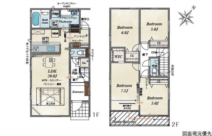 ※土地(建築条件なし)で「建物プラン例」が表記してある時、そのプラン例は特定の建築請負会社によるもので、当該建築請負会社以外で建てた場合、同様のものが同価格で建てられるとは限りません。また建築請負会社を特定するものではありません。