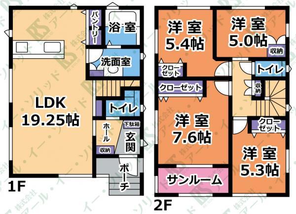 ※土地(建築条件なし)で「建物プラン例」が表記してある時、そのプラン例は特定の建築請負会社によるもので、当該建築請負会社以外で建てた場合、同様のものが同価格で建てられるとは限りません。また建築請負会社を特定するものではありません。