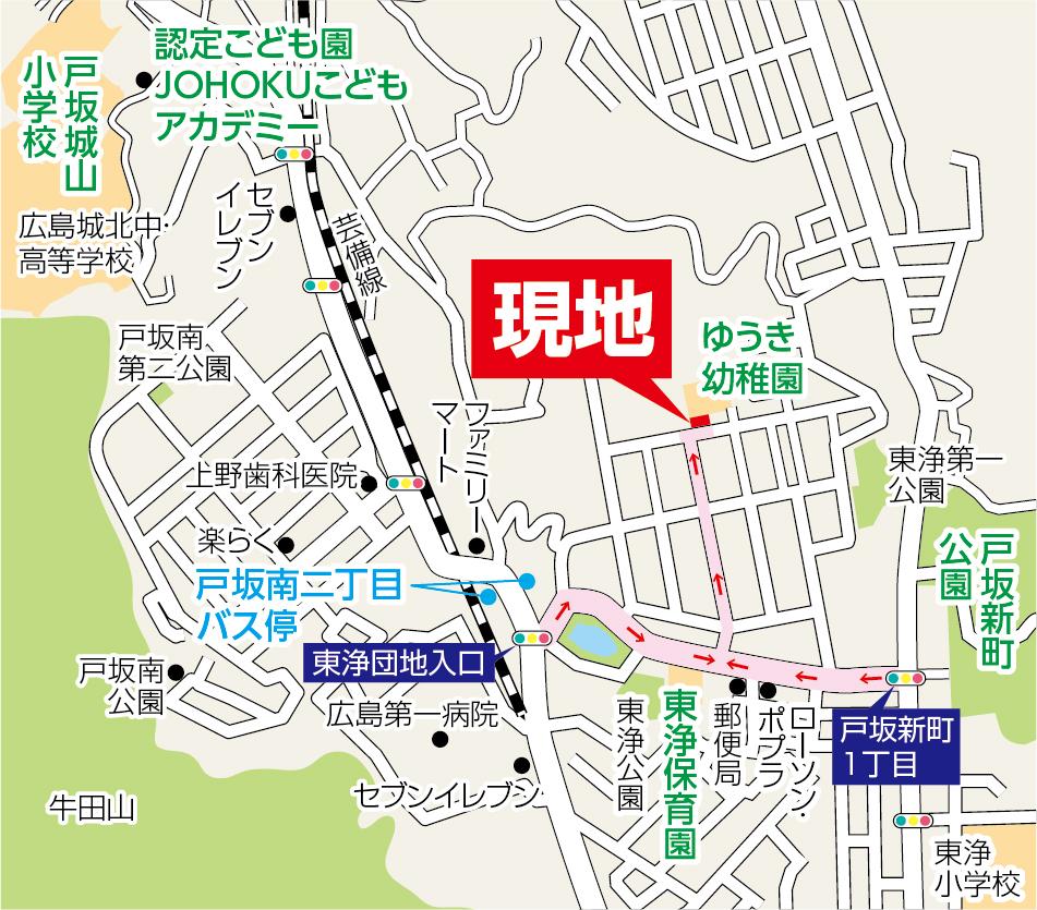 広島市「戸坂南二丁目バス停」歩6分 JR芸備線「戸坂」歩24分 広島高速交通アストラムライン「西原」歩44分 | ||||