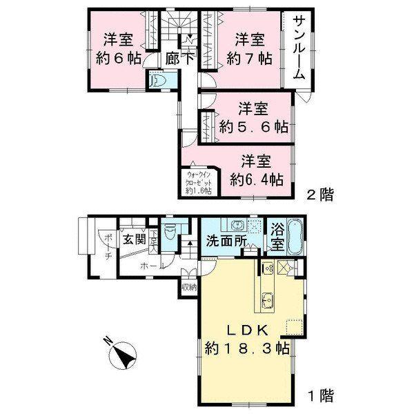 | 設備 | LDK18畳以上 / 2階建 / ウォークインクローゼット / オール電化 | ||||