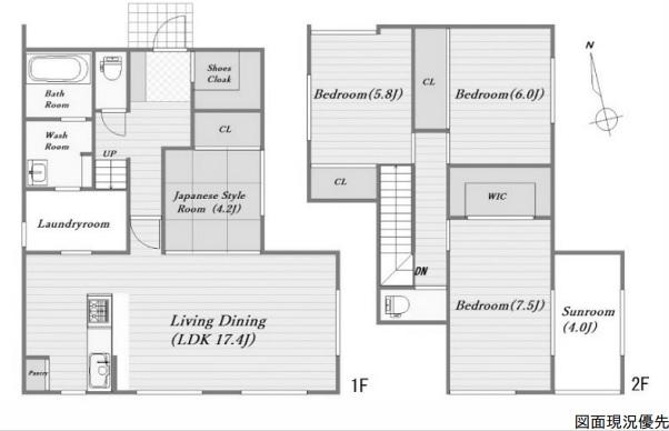 ※土地(建築条件なし)で「建物プラン例」が表記してある時、そのプラン例は特定の建築請負会社によるもので、当該建築請負会社以外で建てた場合、同様のものが同価格で建てられるとは限りません。また建築請負会社を特定するものではありません。