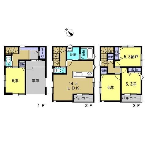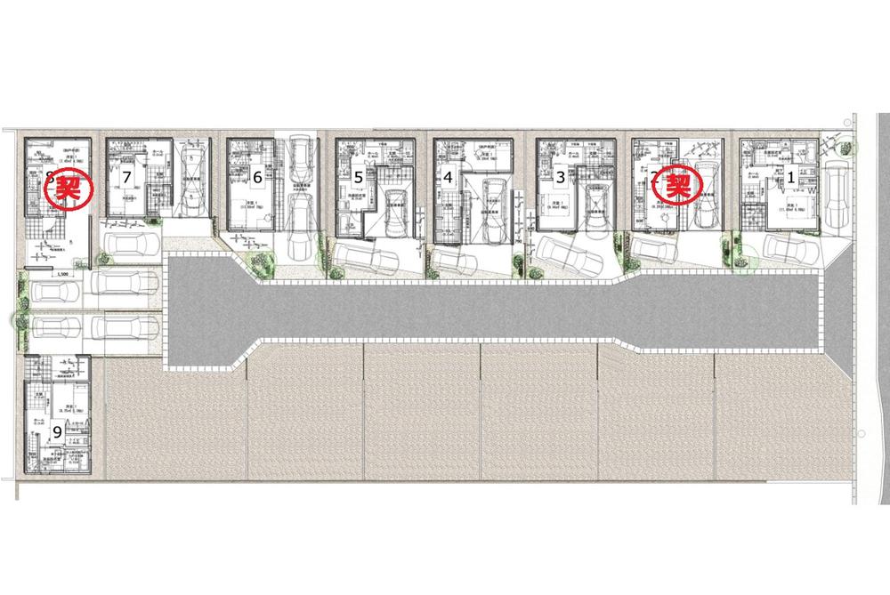 | 建物面積 | 96.87㎡~101.73㎡(29.30坪~30.77坪) | 土地面積 | 73.29㎡~95.73㎡(22.17坪~28.95坪) | ||