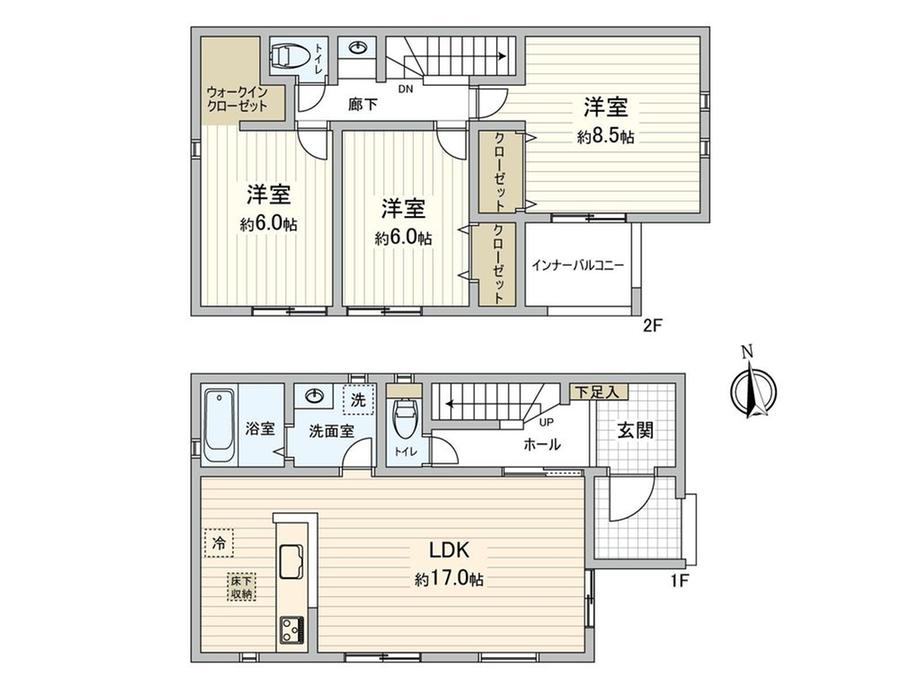 ※土地(建築条件なし)で「建物プラン例」が表記してある時、そのプラン例は特定の建築請負会社によるもので、当該建築請負会社以外で建てた場合、同様のものが同価格で建てられるとは限りません。また建築請負会社を特定するものではありません。