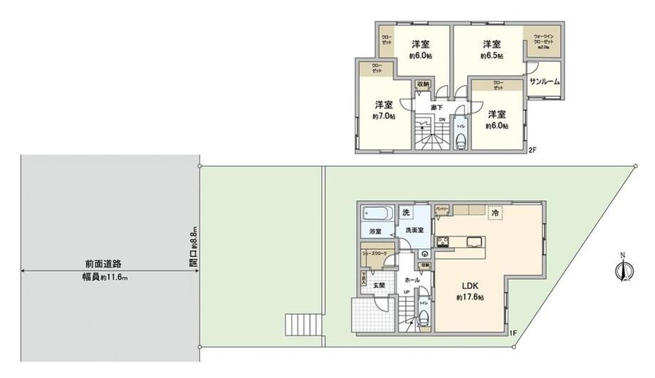 | 地目 | - | 道路付け | 無、西11.6m幅(接道幅8.8m) | ||