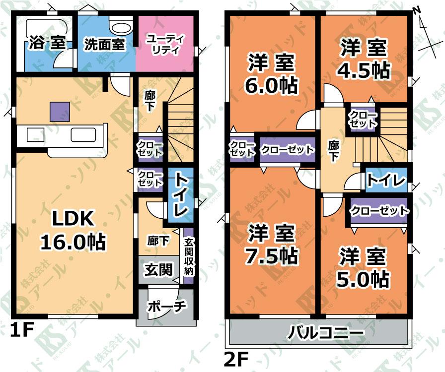 ※土地(建築条件なし)で「建物プラン例」が表記してある時、そのプラン例は特定の建築請負会社によるもので、当該建築請負会社以外で建てた場合、同様のものが同価格で建てられるとは限りません。また建築請負会社を特定するものではありません。