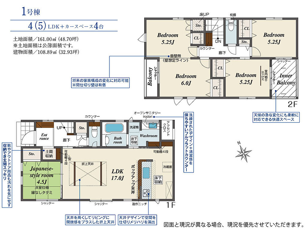 | 建物面積 | 108.89m2(約32.93坪) | 土地面積 | 161.00m2(約48.70坪) | ||