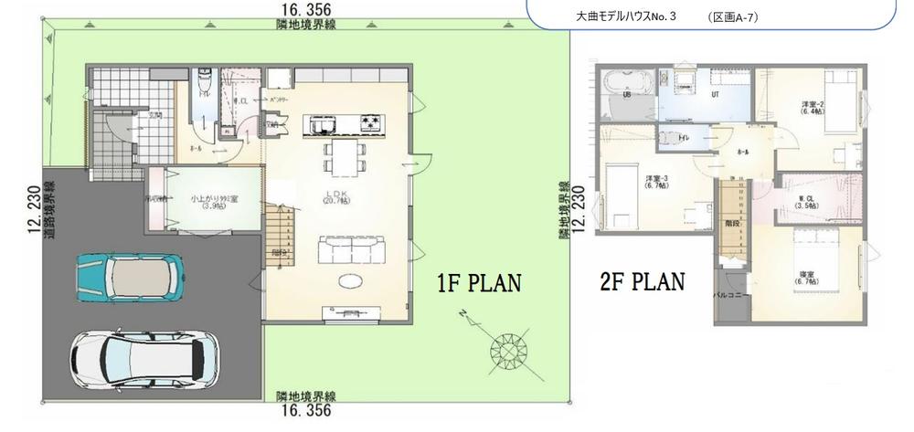 大曲建売モデルハウスNo.3 間取り図家事の動線がスムーズなアイランドキッチンに、20帖LDK。2階にバスルームがあることにより、入浴から就寝までの動線もスムーズに。家族が笑顔で過ごせるお家が誕生!