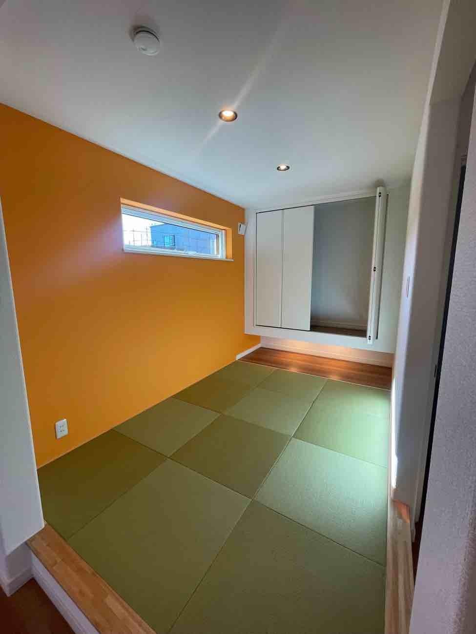大曲建売モデルハウスNo.3リビング・ダイニング横の小上がり和室。お子様のお昼寝スペースや、客間としておもてなしの空間にも♪段差部分を腰掛けとしても♪多用途にお使い頂ける便利なスペースです。