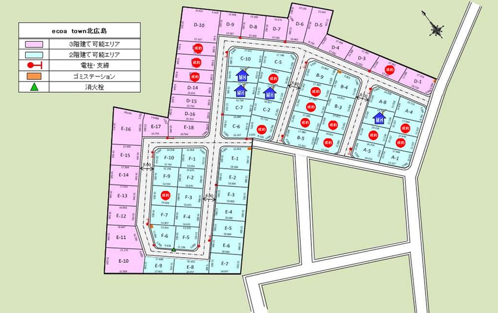 | 構造および階数 | 【No.2】【No.6】木造軸組工法(ピン工法) 【No.3】【No.4】枠組壁工法 | 建ぺい率・容積率 | 建ペい率:60%、容積率:200% | ||