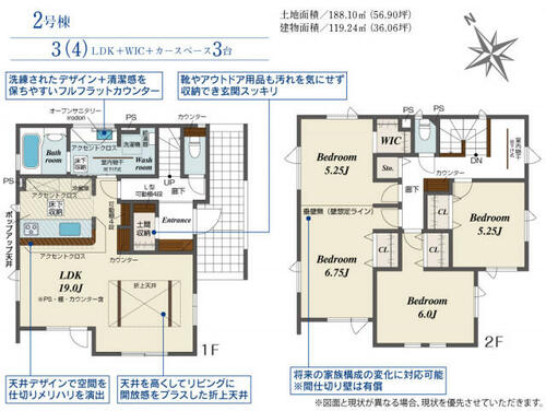 | 建物面積 | 119.24㎡ | 土地面積 | 188.10㎡ | ||