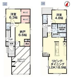 | 設備 | LDK18畳以上 / システムキッチン / 浴室乾燥機 / 陽当り良好 / 角地 / シャワー付洗面化粧台 / 浴室1坪以上 / 2階建 / 温水洗浄便座 / 床下収納 / TVモニタ付インターホン / 通風良好 / 全居室フローリング / アイランドキッチン / ウォークインクローゼット / シューズインクローク / 納戸 / 浄水器 / ビルトインガレージ | ||||