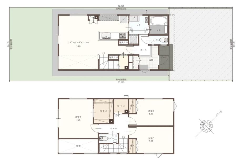 ※建築条件土地の情報内に掲載されている、建物プラン例は、土地購入者の設計プランの参考の一例であって、プランの採用可否は任意です。