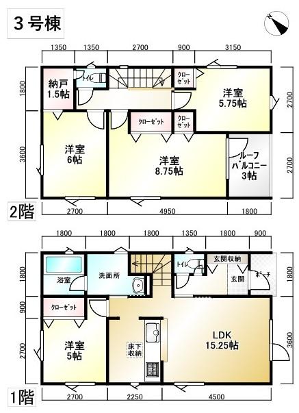 | 間取り | 4LDK+S(納戸)【仲介手数料無料・価格相談可・都市ガス・駐車2台可・ルーフバルコニー付】 | ||||