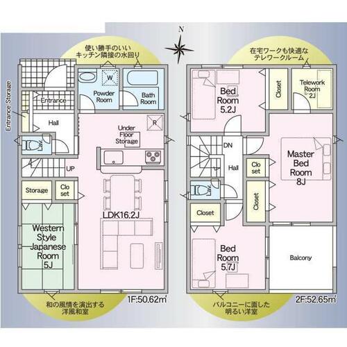 | 設備 | 浴室乾燥機・ウォシュレット・システムキッチン・カウンターキッチン・モニタ付インターホン・トイレ2ヶ所・床下収納・ルーフバルコニー・IHクッキングヒータ・浄水器・複層ガラス・ディンプルキー・側溝・防犯カメラ | ||||