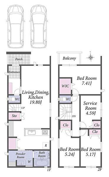 | 設備 | 駐車2台可 / 2沿線以上利用可 / スーパー 徒歩10分以内 / システムキッチン / 浴室乾燥機 / 全居室収納 / LDK15畳以上 / シャワー付洗面化粧台 / 対面式キッチン / トイレ2ヶ所 / 浴室1坪以上 / 2階建 / 複層ガラス / 温水洗浄便座 / TVモニタ付インターホン / ウォークインクローゼット / 都市ガス / 納戸 / 食器洗乾燥機 / 浄水器 | ||||