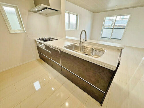 | 設備 | BS端子・追焚機能・都市ガス・浴室乾燥機・Wクロゼット・シャンプードレッサー・ウォシュレット・システムキッチン・カウンターキッチン・モニタ付インターホン・トイレ2ヶ所・浄水器・床暖房・食器洗浄乾燥機・複層ガラス・電気・上水道・下水道・側溝 | ||||